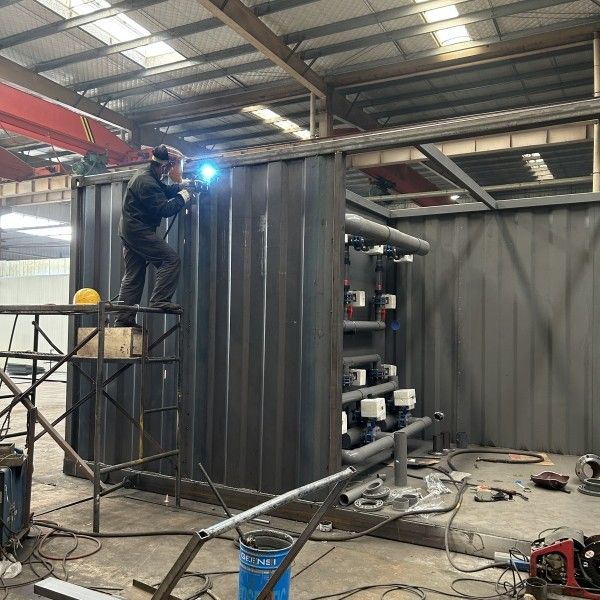 這組設備一共有8套,現在正在制作的是zui后兩套了,即將發往四川,處理的是鄉鎮上的污水處理站的生活污水,單套的處理量為每天500立方,我們這一組設備采用的是濾池工藝,以及硫自養深度脫氮技術,大幅度降低