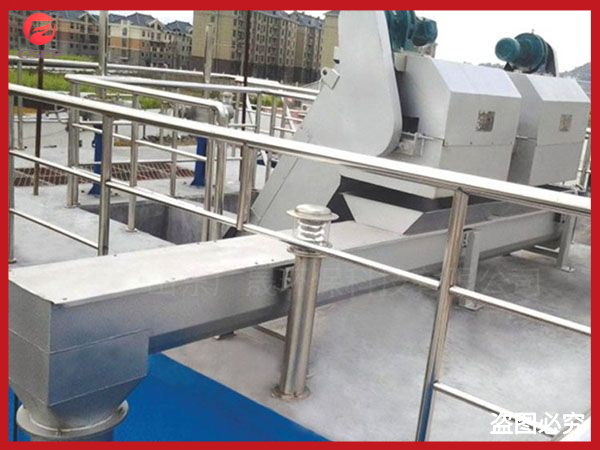 該設備由一種獨特的耙齒結構組裝成回轉格柵鏈,在電機的驅動下,格柵鏈與水流方向成逆向回轉運動。原水流經格柵時,各類固體雜質被截留在篩網上,在電機和減速器驅動下,耙齒鏈下行,呈張開趨勢;當耙齒鏈達到渠底,在導向輪的作用下,耙齒鏈將柵渣耙入;當耙齒鏈運轉到設備的上部時,所載雜質依靠自身重力從耙齒上剝落,而粘在耙齒上的雜質會被清掃器不斷清除,并滑入容器或傳輸帶。在完成排渣后,在導向輪作用下,耙齒鏈下行,進入下一個工作循環。