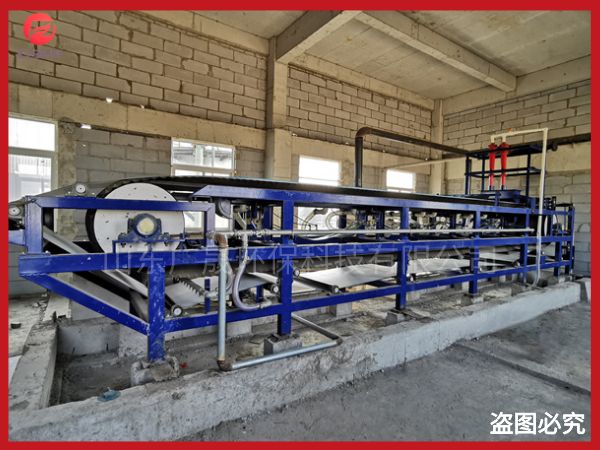(3)扇形板轉(zhuǎn)出液面時,真空并不立即消失,仍使濾網(wǎng)上的濾層繼續(xù)脫水,濃度不斷增大。例如煙臺鑫海礦機的盤式過濾機脫水充分,處理量大,被廣泛應用。