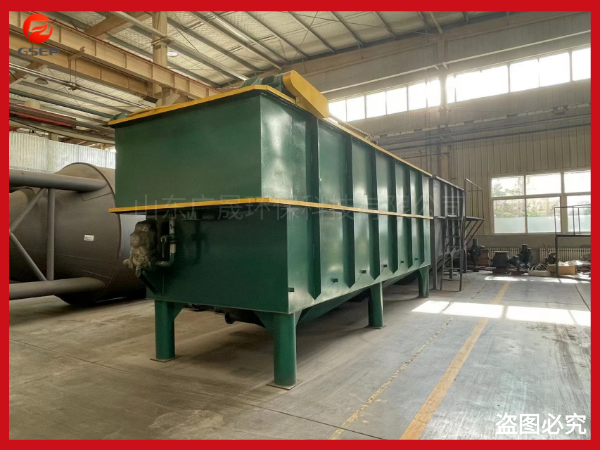 (2)氣浮機:經加藥反應后的污水進入氣浮的混合區,與釋放后的溶氣水混合接觸,使絮凝體粘附在細微氣泡上,然后進入氣浮區。絮凝體在氣浮力的作用下浮向水面形成浮渣,下 層的清水經集水器流至清水池后,一部分回流作溶氣使用,剩余清水通過溢流口流出。氣浮池水面上的浮渣積聚到一定厚度以后,由刮沫機刮入氣浮機污泥池后排出,氣浮底部的淤泥定時間用抽糞車吸出外運,或者是打開排污閥自流入污泥收集池,用污泥脫水機脫水處理,從而減少二次污染,安全可靠。